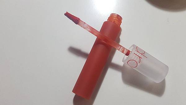 唇釉也是新同學,"Romand see through tint"色號是3 through coral,這支是半霧面的珊瑚橘色,滿好駕馭的,刷頭是長方形的,我這支擦在嘴唇上,會有點刺刺的異物感,覺得是瑕疵,乾的不會太快,所以可以用手指暈開也好暈,不會顯唇紋,補擦個3次才會起死皮,滿喜歡的。