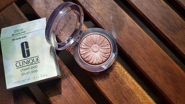 再一個是倩碧小花nude pop,超火紅的一顆,我這陣子特價才入手,這顆真的很美,拿著看覺得應該不顯色,但其實不會,上臉顏色滿明顯的,可以大刷特刷,也是帶有一點珠光,不會顯毛孔,會讓我的皮膚質感提升,超愛。我覺得小花腮紅不會難取粉,因為壓的很密實,所以也不會飛粉,它在我臉上很持久,上班帶妝一整天,下班還會在。我很喜歡。