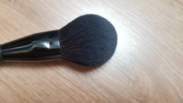 化纖毛,舌型刷型頂端有尖尖的,毛量豐沛有厚度,取粉釋粉力都很優秀,上臉完全不會刺,洗過也一樣,形狀好維護,定妝的速度也很快,是相當優秀的刷子。