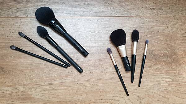 也是化纖毛,但毛量少,有點稀疏,眼下定妝堪用,打亮普通,當時入手時覺得好用,後來跟大藝術家比,就覺得遜掉。