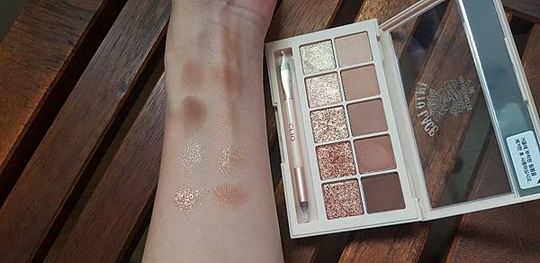 霧面很好暈染,顏色很漂亮,日常用超美,加點珠光亮片,就閃閃動人,clio這系列十色眼影盤,真的表現很優質。