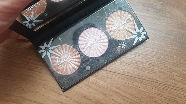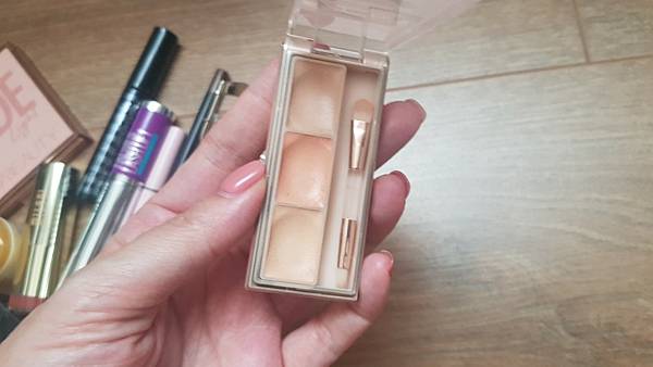三色都是明星色,我很久以前買的,所以包裝是舊款的,現在也沒有這樣的組合了,不然一定會賣爆,我用pillow talk畫鼻梁、鼻頭,用rodeo drive打亮臉頰,實在很美。珠光算是大的,但不會太暴力,稍稍顯皮膚紋理,還在我忍受範圍內。