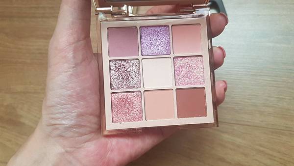 相當美的九宮格,我很喜歡,日常就可擦,顏色很溫柔,霧面好暈染,珠光亮片色相當閃亮細緻,我超愛的啦。