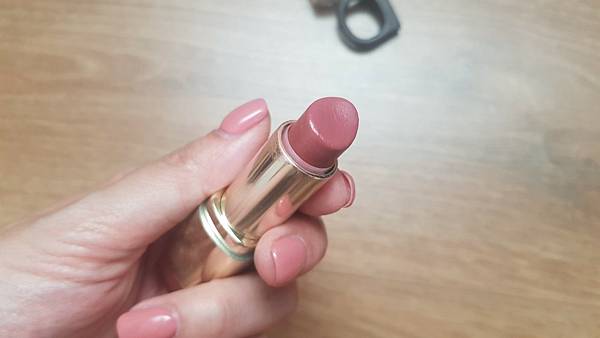 老網紅,我都用到剩一點了,再次擦上它依然喜歡,是偏粉的豆沙色,以前都很不懂我媽媽為啥那麼愛買豆沙色的口紅,喔,我現在知道了,百搭又氣色顯氣質。