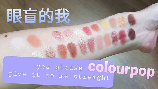 為啥要分享這兩盤呢,我一開始是先買yes please,很喜歡,因此喜歡上colourpop這個品牌,當時我在物色下一盤,我記得give it to me straight也是超級網紅,我在官網上看圖片,卻覺得配色和yes please超像,遲遲不敢下手,一直很怕買到雙胞胎。