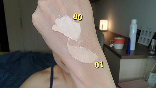 01對我來說太淺,我應該買02來遮我的黑眼圈才對,01擦起來會有點灰灰的,接下來再用00提亮,效果不好,我覺得我太衝動了,應該要先買一支就試試顏色才對,算了,千金難買早知道。