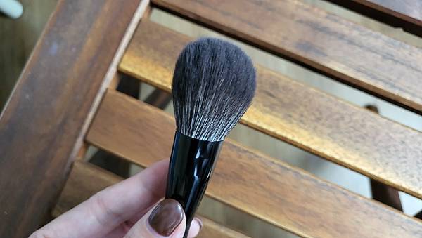 是我喜歡的刷型,厚舌型刷,毛量豐厚而且蓬鬆,這要是最好,因為打在臉上就是舒服,它不會刺,所以可以整臉嚕。使用感受滿好的,也算是快乾,缺點就是價格太高。