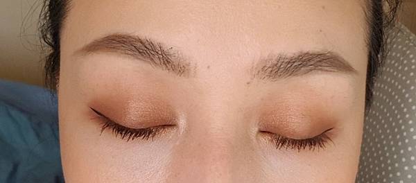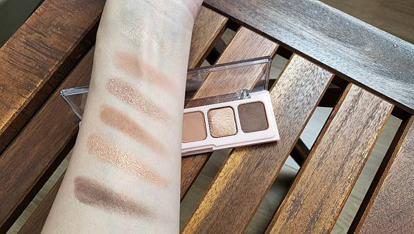 我覺得很美,也很日常,可以再濃一點,就不停疊加就好了,平常上班無腦刷也可以,我認為是很直得入手的一盤,而且珠光色在盤子裡,感覺很低調,上眼睛的時候,卻很明顯的閃亮,超意外!很喜歡。畫眼影的時候不會掉粉唷,眼下乾乾淨淨。