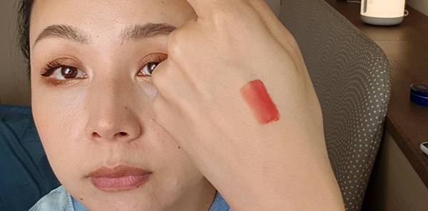 護唇膏:挺油潤的,滋潤度很不錯,上妝前擦,等到畫完再抹掉,嘴唇很舒服,唇況可以維持住,後續上唇彩不太卡皮。