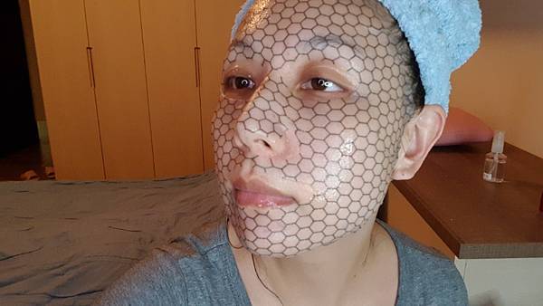 先說它的面膜紙,真的優質,很薄很軟很服貼,官網說是「石墨烯超導布」有蜂窩圖案,因為很柔軟,所以有墊一層不織布,貼上臉後再撕掉,拉平就可以了。