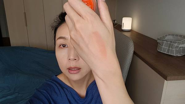 腮紅膏好用,新手用不容易失手,膏體用手嚕一嚕就滑順也很好沾取,我定完妝後,用粉底刷可以輕易上臉,下手太重還是會帶走底妝,換成海綿比較好掌控,可以疊加,magic hour這個顏色很可愛,帶棕調的橘色,很適合我黃皮膚,很顯氣色,它待在臉上一段時間,會收乾,不會黏黏的,擔心口罩摩擦的話,還是定妝比較保險。