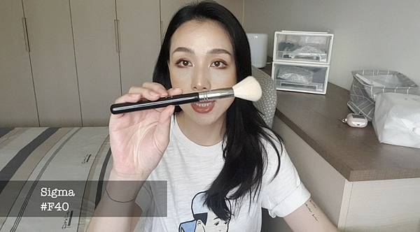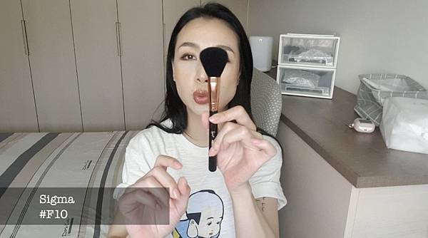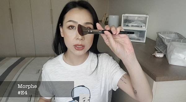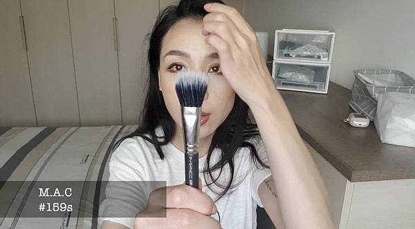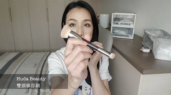 一邊小一邊大,看Huda都是用小頭去沾膏狀修容,然後塗在臉上,再用大頭的地方去暈開。因為我沒有膏壯修容,所以我用粉狀,也可以欸,我用小頭的地方沾淺灰色來修鼻影,再用大頭沾深一點的修臉部,超級適合,因為它的刷毛是短的,密實的,所以暈開特別帶勁,也不會帶走底妝,用起來很順手!