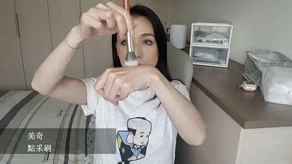 類似點采刷的刷型,有兩層刷毛,最外層的像是紗裙那樣,可以暈染邊界暈染得很自然,這支其實是設定為腮紅刷,但因為它滿小支的,所以我拿來當打亮刷,一樣傑出優秀。
