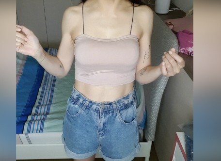 極細肩帶附襯墊短版背心 #藕粉色 原:250元