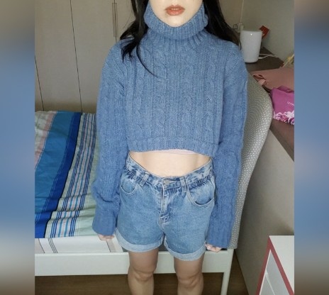磅數超重的針織衫,非常有份量,高領好氣派,會包到下顎線,這種就是寒流來的時候穿,整個人會顯得瘦小,袖子夠長,有點楚楚可憐,但重點是,它前短後長,前好短,就算穿上高腰褲也是會露肚子,怎麼辦呢?一度想要退貨,但衣服又好看,今年冬天來當個不停發抖的辣媽好了。